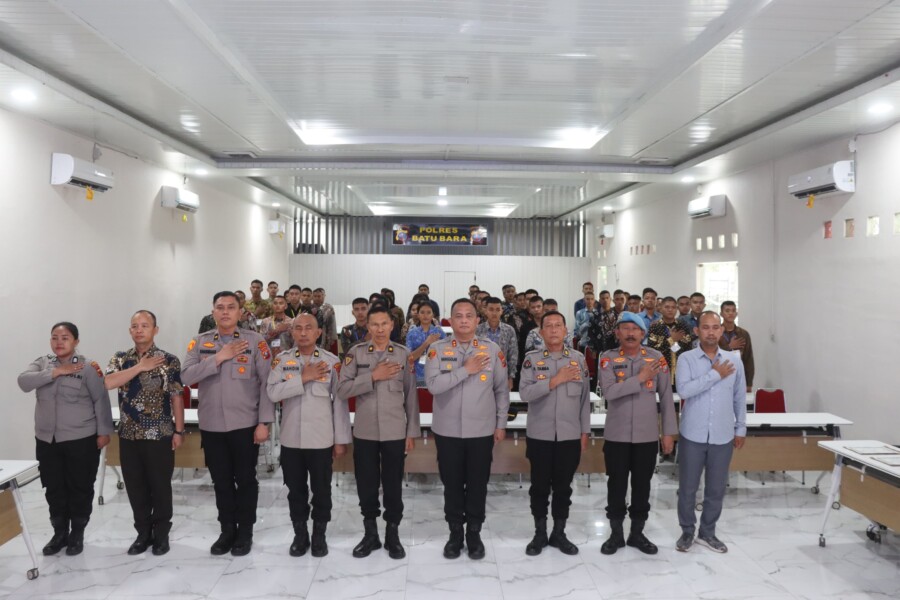 BATUBARA I Sebanyak 49 orang pendaftar calon anggota Polri Tahun Anggaran 2026 mengikuti kegiatan penandatanganan pakta integritas dan pengambilan sumpah dalam rangka proses penerimaan anggota Polri, Selasa, (31/3/2026) dilaksanakan di Aula Sarja Arya Racana Polres Batu Bara.