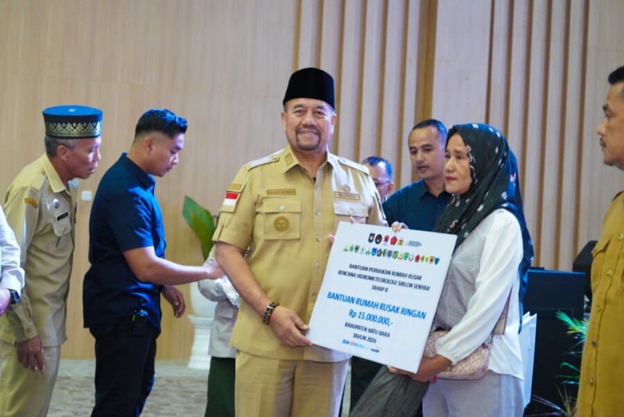 BATU BARA I Pemerintah Kabupaten Batu Bara menerima bantuan perbaikan rumah rusak bencana Hidrometeorologi Siklon Senyar Tahap II, sebanyak 84 keluarga dari Badan Nasional Penanggulangan Bencana Republik Indonesia (BNPB RI) di Aula Kantor Bupati Batu Bara, Kecamatan Lima Puluh, Selasa (3/3/2026).