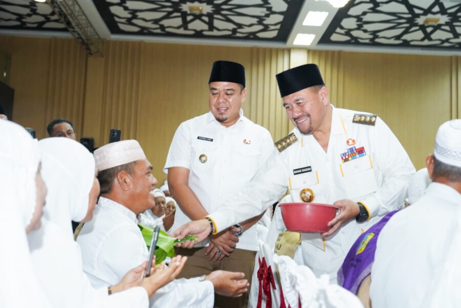 BATU BARA l Bupati Batu Bara Bapak H. Baharuddin Siagian, SH, M.Si bersama Wakil Bupati Bapak Syafrizal , SE M.AP melaksanakan tampung tawar kepada Calon Jemaah Haji asal Kabupaten Batu Bara yang digelar di Aula Kantor Bupati, Lima Puluh, Selasa (06/05/2025).