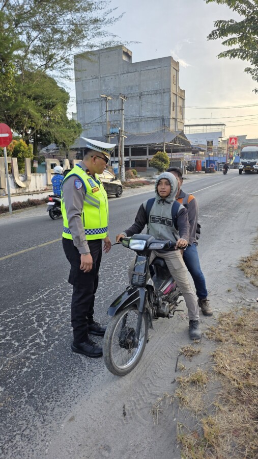 Dalam kegiatan tersebut, KBO Lantas Ipda Putra Hasibuan bersama personel memberikan himbauan secara humanis kepada para pengguna jalan, khususnya pengendara sepeda motor, agar selalu menggunakan helm berstandar SNI demi keselamatan saat berkendara.