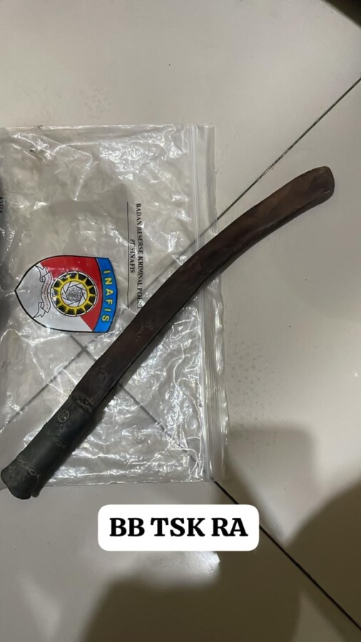 Petugas yang mendapat laporan langsung mendatangi lokasi kejadian dan mengamankan barang bukti 1 bilah parang, pelaku masih menjalani pemeriksaan intensif untuk mendalami motif dan kronologi lengkap kejadian. Pelaku dijatuhkan Pasal 351 ayat 2 dari KUHPidana.