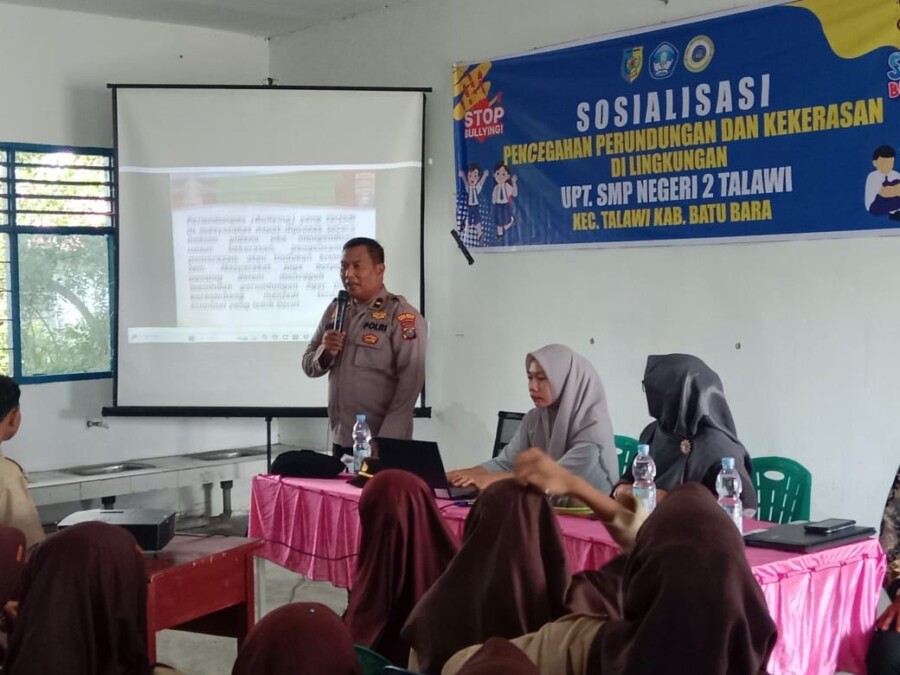 BATUBARA I Kanit Binmas Polsek Labuhan Ruku Ipda Alpian melaksanakan kegiatan sosialisasi tentang Perlindungan Anak di Sekolah Menengah Pertama (SMP) Neg 02 Talawi Kec Talawi Kab. Batu Bara. Sabtu (15/11/2025)