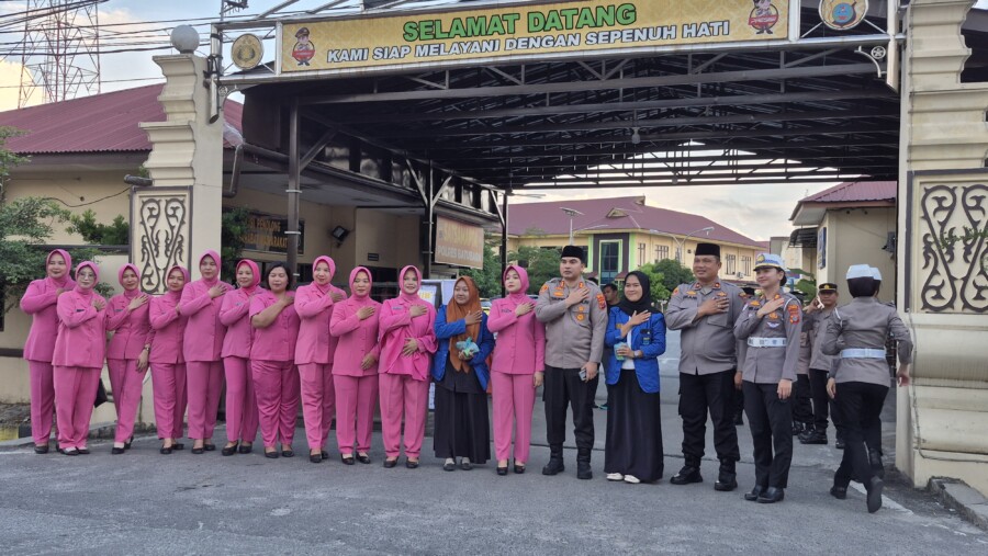 BATUBARA I Kapolres Batubara AKBP Taufiq Hidayat Tayeb bersama Ketua Bhayangkari Cabang Batubara Ny. Desy Taufiq Hidayat dan seluruh pengurus Bhayangkari berbagi takjil saat menunggu azan magrib menjelang berbuka puasa / Ngabuburit, Sabtu (8/3/2025), Pembagian takjil ini tepatnya dilakukan di jalan lintas depan Mapolres Batubara