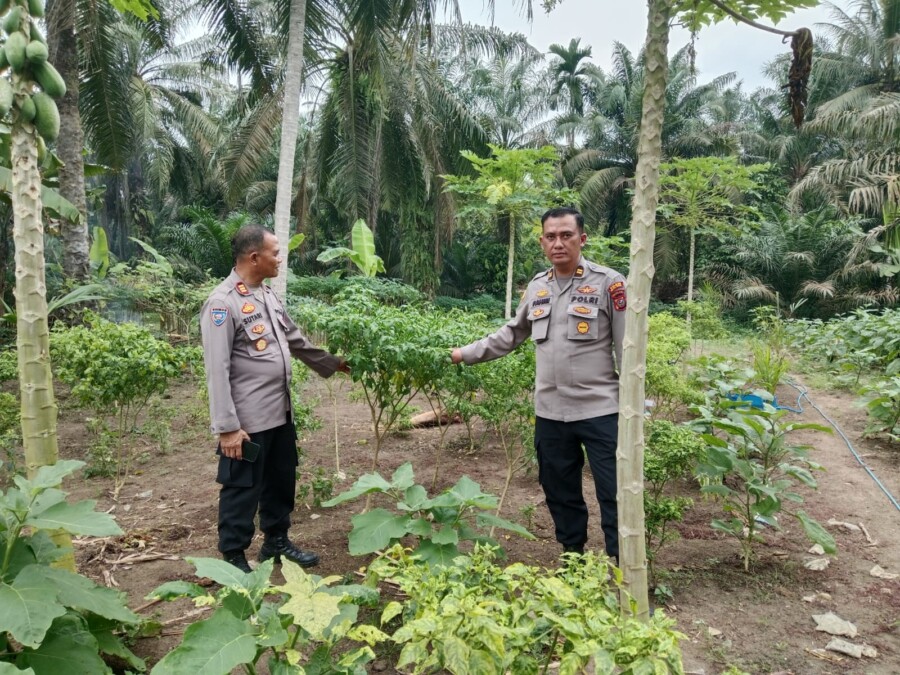 BATUBARA I Upaya mendukung program Presiden Republik Indonesia Prabowo Subianto, Kasat Binmas AKP Sutari bersama Kasi Humas Polres Batubara Iptu Fahmi melakukan pengecekan lahan ketahanan pangan serta memberikan motivasi bagi petani, Jumat (9/5/2025) di Kecamatan Datok Tanah Datar Dsun II Desa Karang Baru,