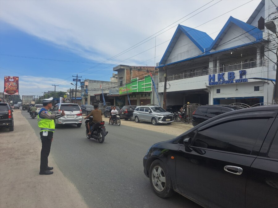Petugas tampak berjaga di sejumlah gereja di wilayah hukum Polres Batu Bara. Selain melakukan pengamanan, personel juga membantu mengatur arus lalu lintas di sekitar lokasi ibadah guna mencegah kemacetan dan menjaga ketertiban.