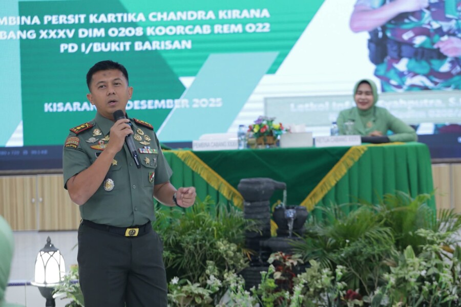ASAHAN I Komandan Kodim 0208/Asahan Letkol Inf Edy Syahputra, S.H., M.I.P., selaku Pembina Persit Kartika Chandra Kirana Cabang XXXV Dim 0208/Asahan, menghadiri kegiatan Pertemuan Gabungan Persit Kartika Chandra Kirana yang dilaksanakan di Aula Pandawa Sakti Kodim 0208/Asahan, Rabu (10/12/2025).