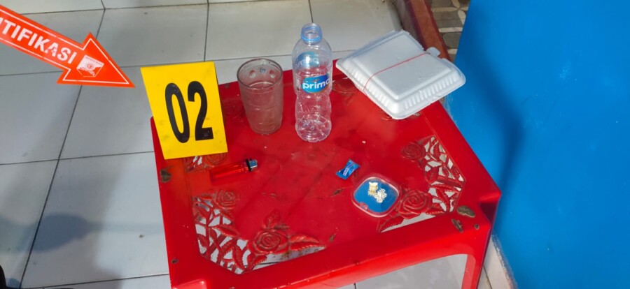 Petugas yang tiba di lokasi langsung melakukan olah Tempat Kejadian Perkara (TKP) dan mengamankan sejumlah barang bukti, termasuk satu botol jamu bermerk “Jantan” yang ditemukan di dalam kamar.