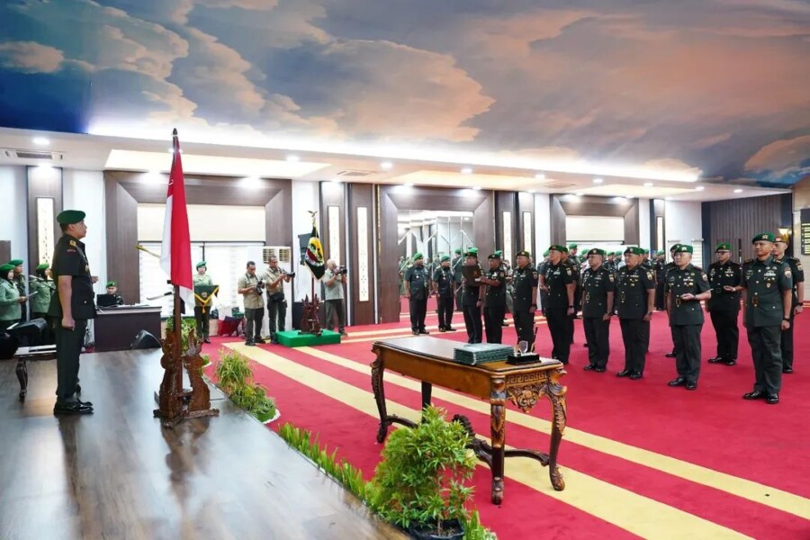 MEDAN I Pangdam I/Bukit Barisan Mayjen TNI Hendy Antariksa memimpin serah terima jabatan (sertijab) dan tradisi korps pejabat utama di lingkungan Kodam I/BB. Kegiatan tersebut berlangsung di Gedung AH Nasution Lantai II Makodam I/BB, Medan, Sabtu (25/4/2026).