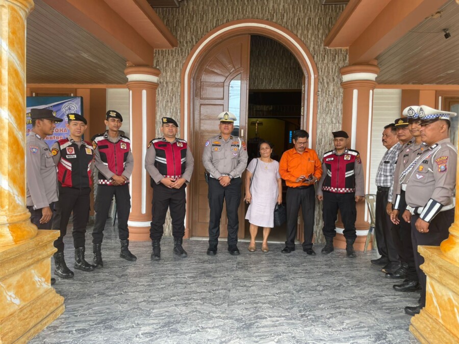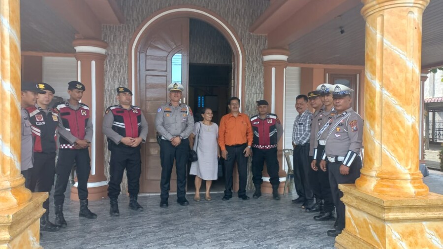 BATUBARA I Dalam rangka hari Isa Al Masih Satlantas Polres Batubara berikan rasa aman kepada jemaat yang sedang menjalankan ibadah digereja HKBP Resos Lima Puluh, Kamis (29/5/2025)