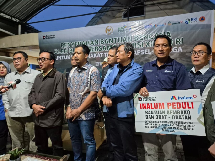 MEDAN I T Indonesia Asahan Aluminium (INALUM) bersama Komisi XII DPR RI dan beberapa perusahaan BUMN seperti Pertamina, Antam, PLN, BRI, dan BTN menyalurkan bantuan untuk korban terdampak banjir bandang dan tanah longsor yang melanda beberapa wilayah di Provinsi Sumatera Utara diantaranya Kota Sibolga, Kabupaten Tapanuli Tengah, Kabupaten Tapanuli Selatan, serta Kabupaten Mandailing Natal, Kamis (27/11/2025)