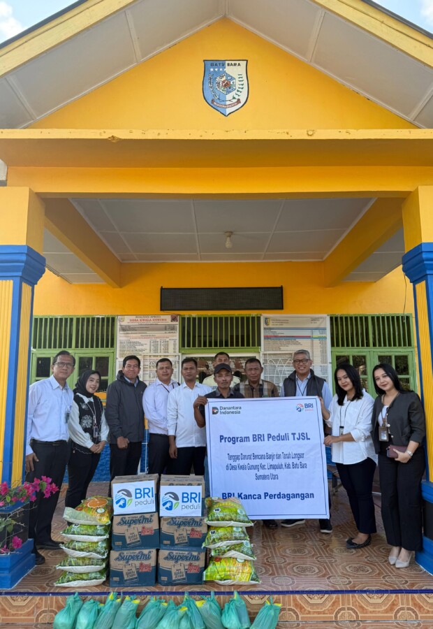 BATUBARA I Sebagai bentuk kepedulian terhadap masyarakat yang terdampak banjir, Bank Rakyat Indonesia (BRI) Cabang Perdagangan menyalurkan Puluhan bantuan paket sembako kepada warga melalui Kepala Desa Air Hitam dan Desa Kuala Gunung Kecamatan