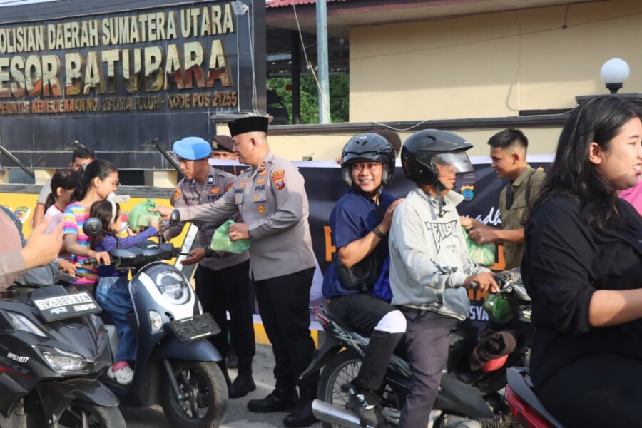 BATUBARA I Dalam rangka menyemarakkan Bulan Suci Ramadhan, Kapolres Batubara AKBP Doly Nelson H.H Nainggolan SH M.H bersama PJU serta personel turun langsung ke jalan membagikan takjil kepada para pengguna jalan yang melintas menjelang waktu berbuka puasa. Selasa (3/2/2026)
