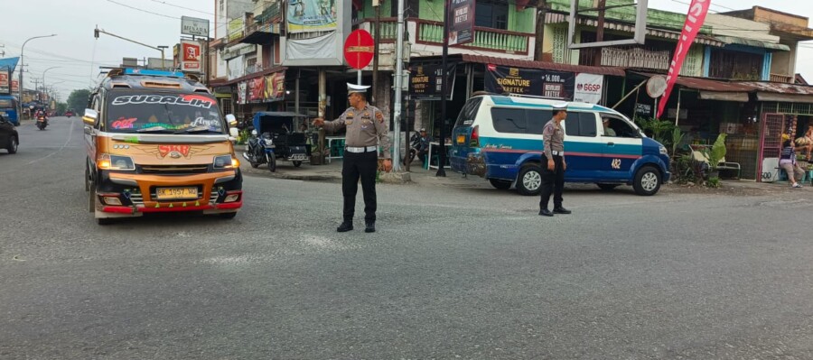 BATUBARA I Dalam rangka memberikan pelayanan prima kepada masyarakat, Kasat Lantas Melalui KBO serta Anggota Satlantas Polres Batubara menggelar pengaturan lalu lintas di pagi hari. Jumat (30/5/2025)