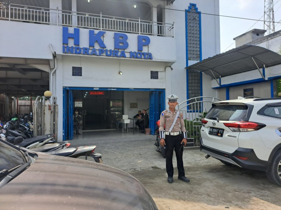 BATUBARA I Di hari minggu kasi satlantas Polres Batubara berikan kenyaman untuk beribadah disejumlah gereja wilayah hukum Polres, Minggu (11/5/2025)