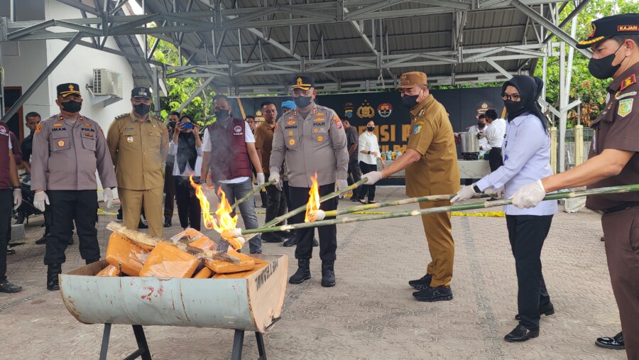 BATUBARA I Bupati Batubara Baharuddin Siagian dan Kapolres AKBP Doly Nelson H.H Nainggolan menyampaikan sekitar 28.135 gram narkotika jenis sabu, pil ekstasi dan daun ganja dimusnahkan,