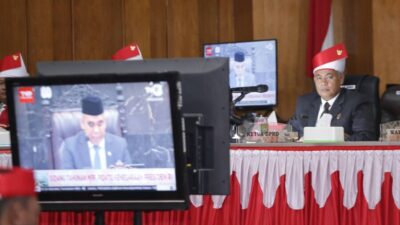 ASAHAN I Komandan Kodim 0208/Asahan Letkol Inf Edy Syahputra, SH., M.I.P. bersama unsur Forkopimda Kab. Asahan mengikuti secara langsung Pidato Kenegaraan Presiden Republik Indonesia, Prabowo Subianto, melalui video conference (vidcon)…