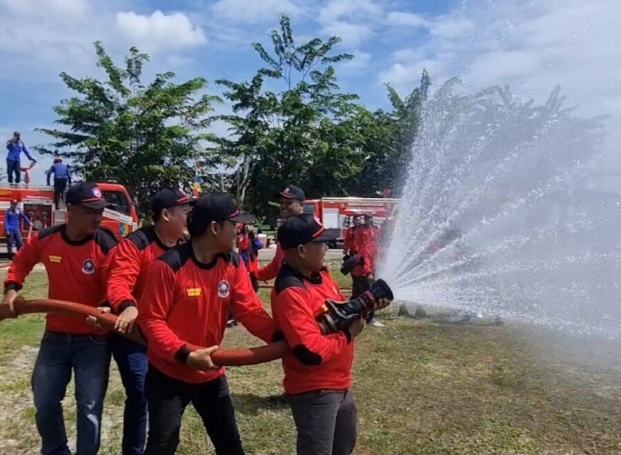 BATUBARA I Kepala Satuan Polisi Pamong Praja (Satpol PP) Ronald Siahaan bersama Tim Instruktur latih 50 Relawan Damkar (Redkar) di Halaman Kantor Bupati Batu Bara, Kelurahan Lima Puluh. Sabtu (29/11/2025).